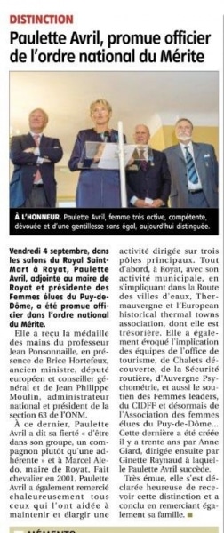 OFFICIER DE L’ORDRE DU MERITE De nombreuses personnalités étaient présentes, dont le Maire de Royat, le Député européen, Conseiller Régional Brice HORTEFEUX
